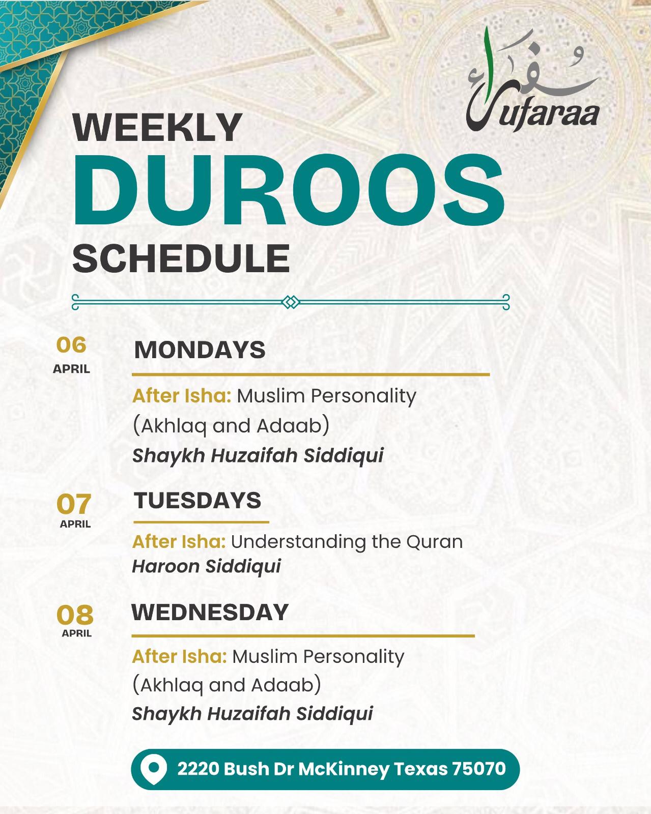 Experience the beauty of the Qur’an through heartfelt recitations and reminders by guest reciters and our talented Sufaraa students!