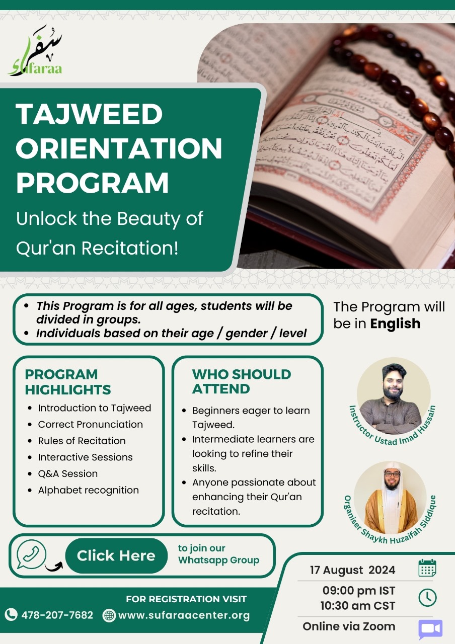 Sufaraa empowers students, families, and the community by fostering a deep understanding of the Quran through comprehensive Arabic language instruction, memorization, and Ulom-ul-Quran. Our approach goes beyond mere memorization, aiming to cultivate a profound and meaningful connection with the Quranic text and Islamic studies, as our Beloved Prophet Muhammad (PBUH) did with his Sunnah.