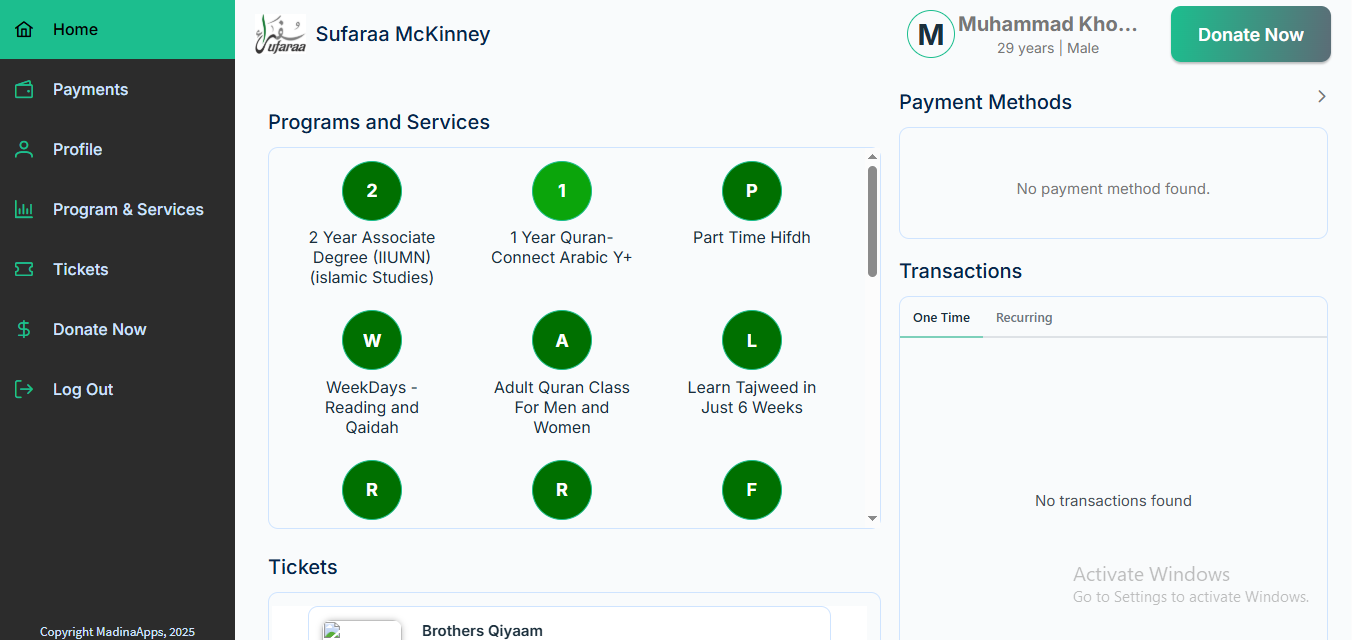 First, if you are already a signed-up member of the Madina app, then you just need to enter your email and password to log in to the portal, and you will be able to see all the programs there